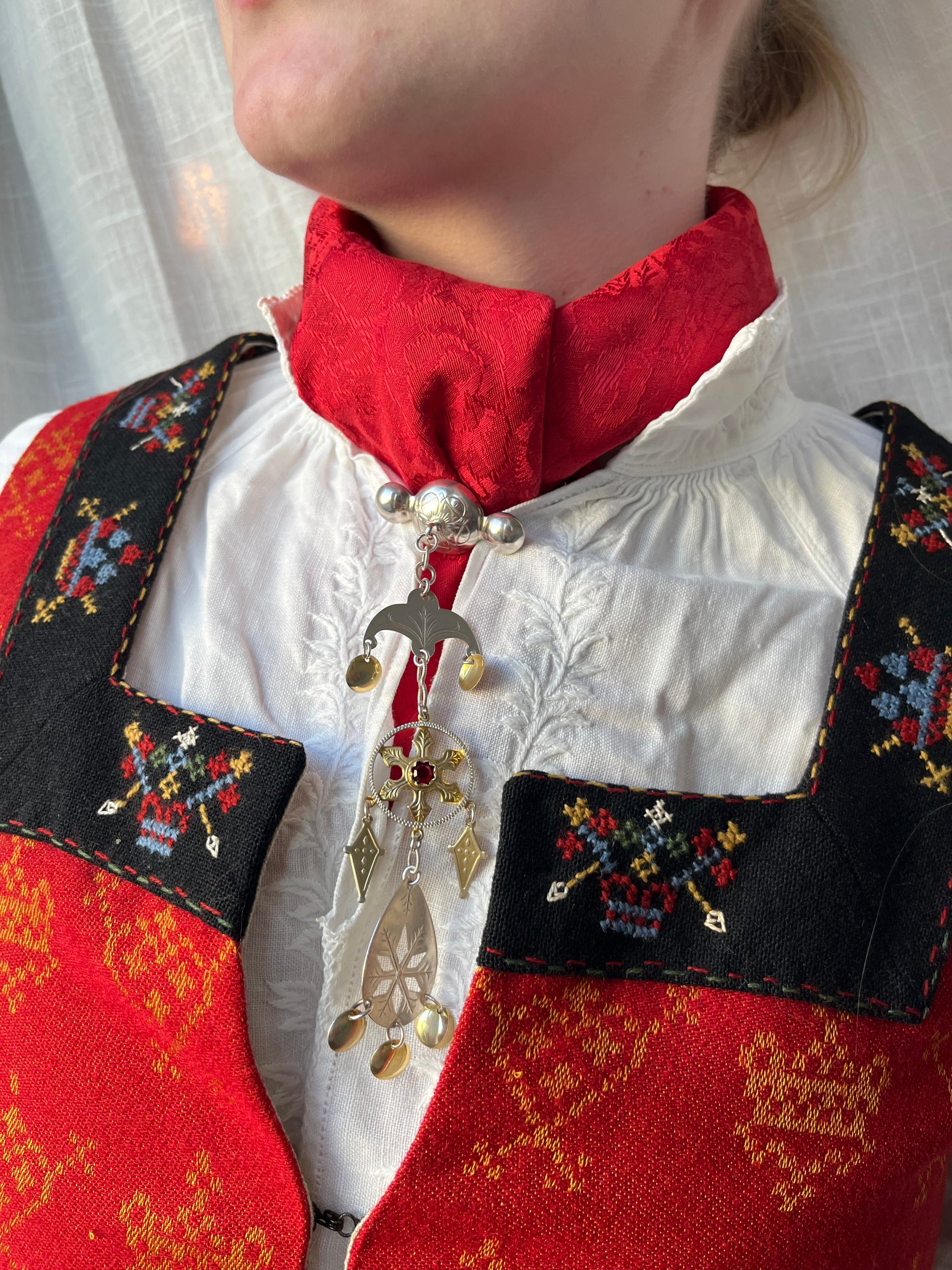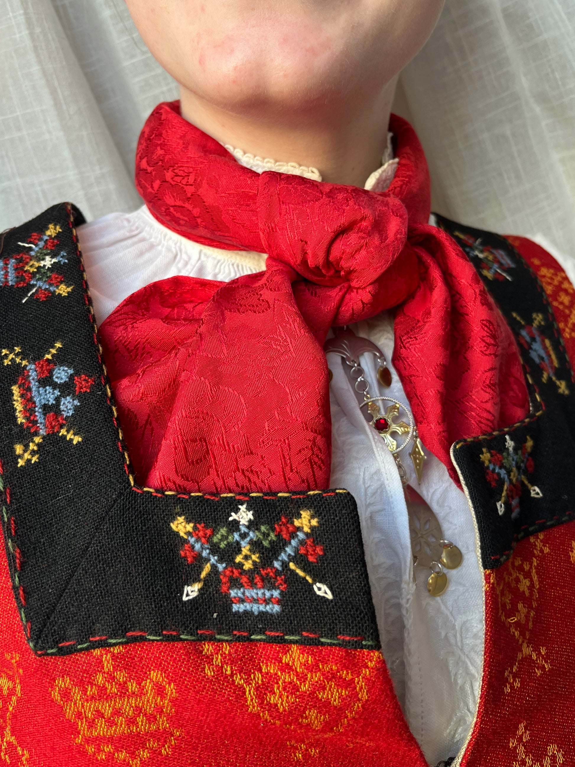 Enkel rød er en bomull brokade, og derav litt tykkere i stoffet.
