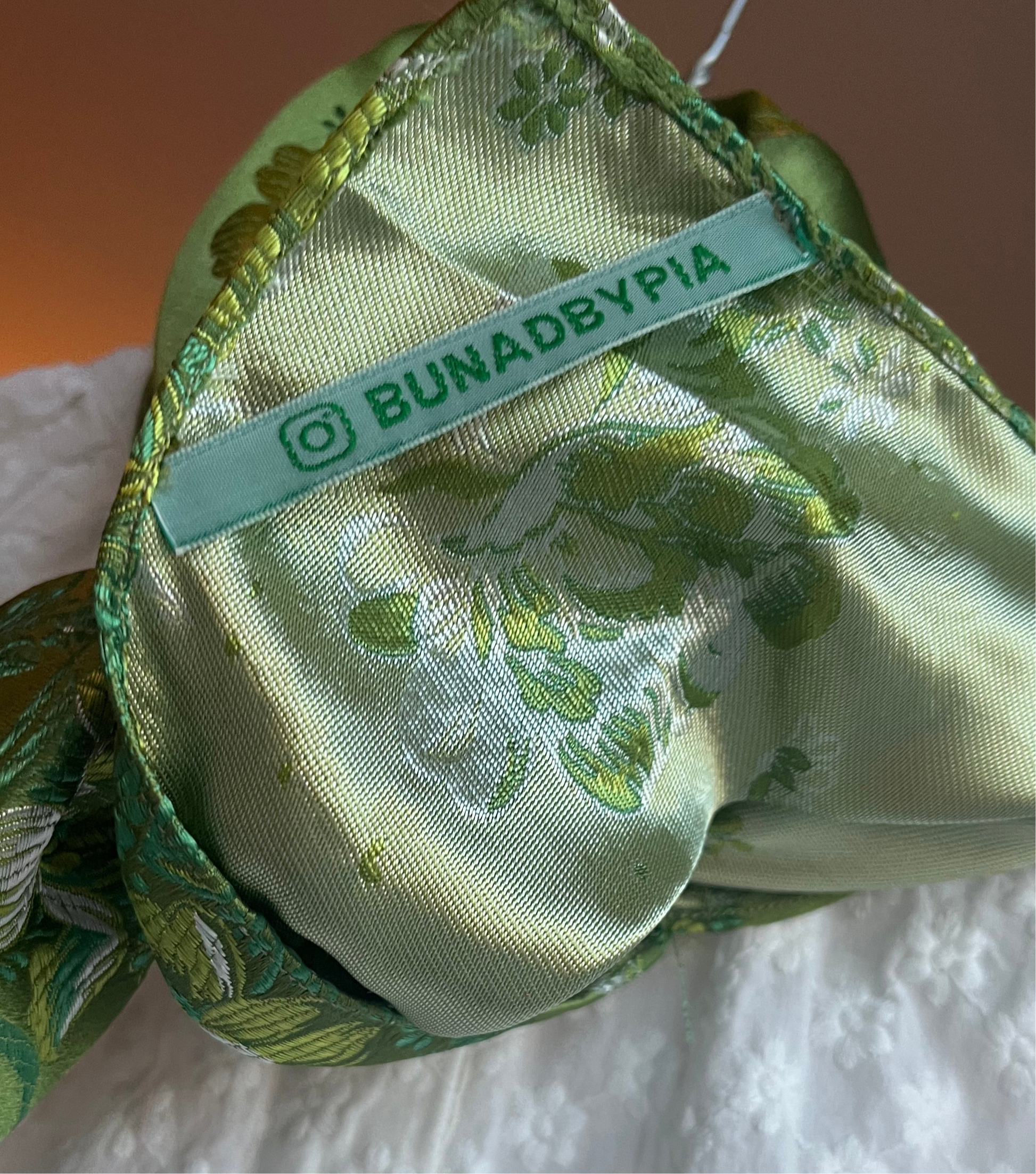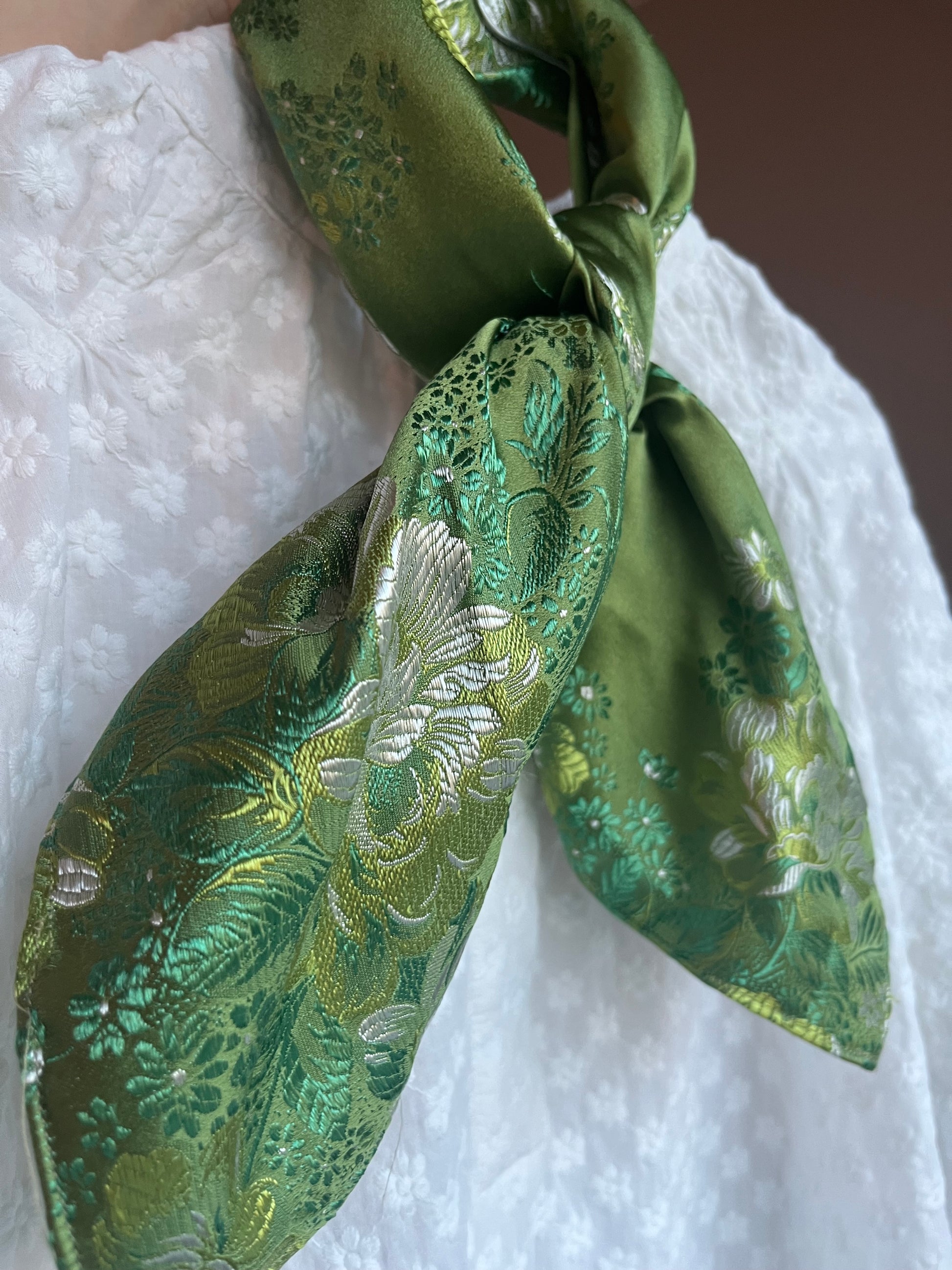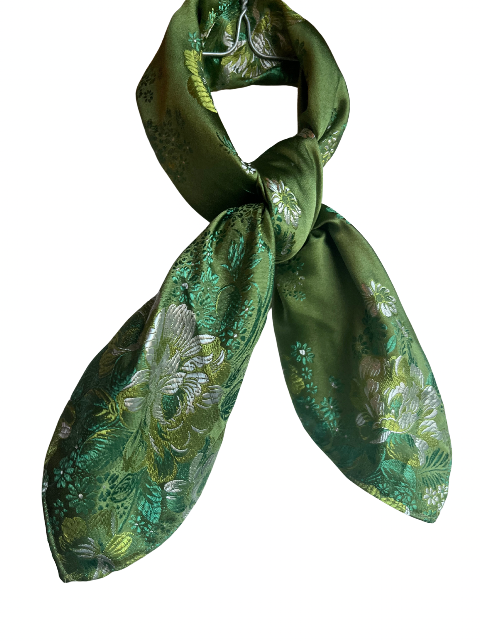 Grønn blomstereng er ett mykt brokadestoff av jacquard. Skjerfet er tynt og fint å knyte.